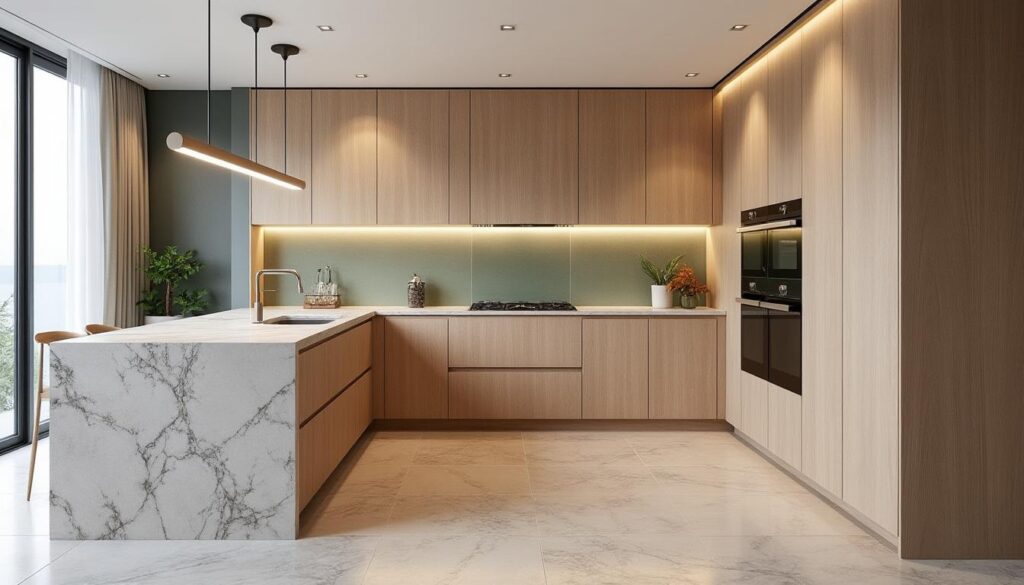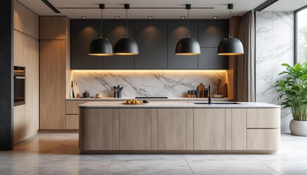 En 2025, les formes arrondies pour les îlots gagnent en popularité, favorisant la circulation et adoucissant l’esthétique générale.